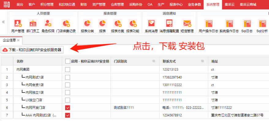 第一步:在【系统管理】的【企业信息】页面下载安装包