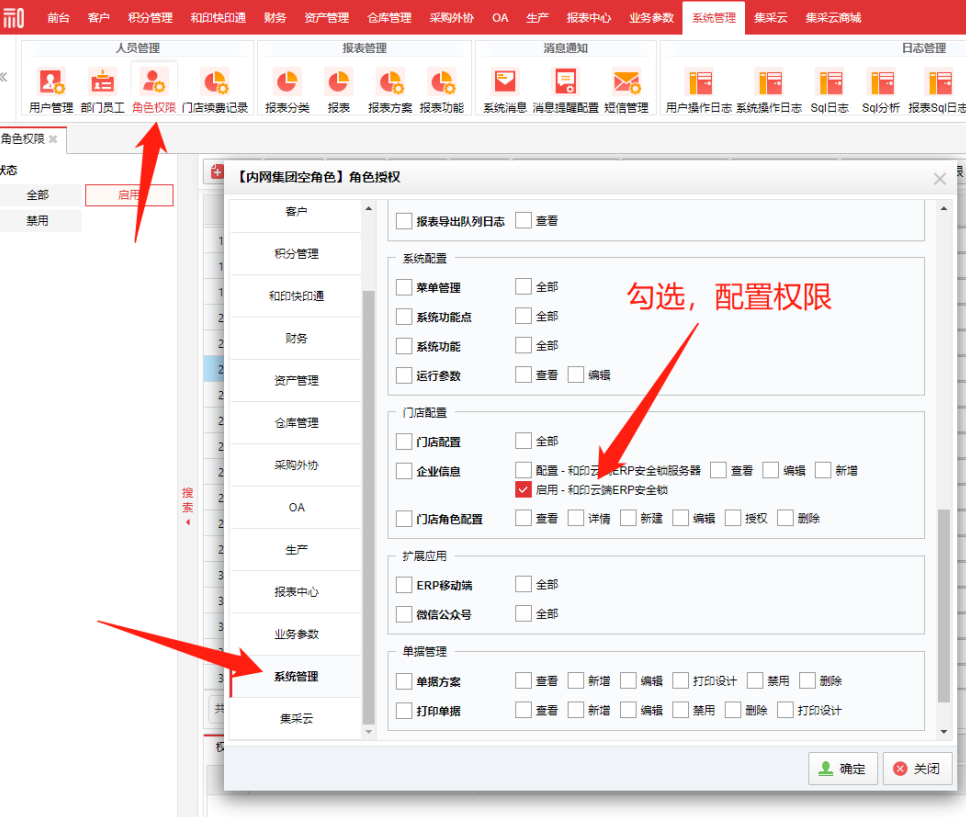 第五步:在【系统管理】的【角色权限】页面配置权限