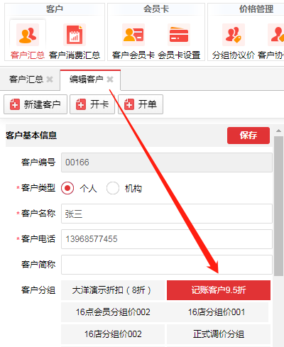 未开卡的客户也可以关联分组协议价,只是折扣可能会少一点;在【客户汇总】页面编辑某个客户的信息时,勾选【客户分组】栏相应的分组协议价标签即可。