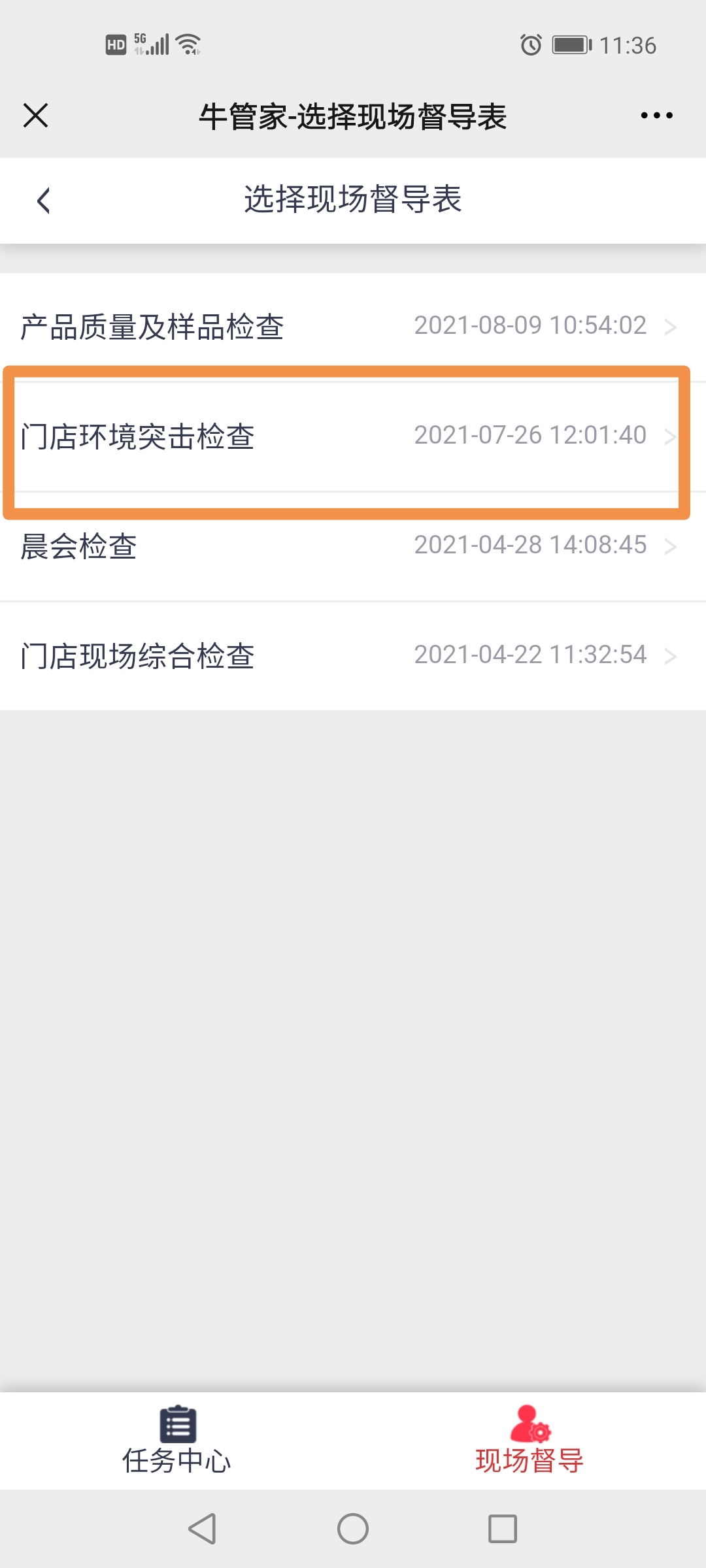 选择【现场督导表】,比如选择“门店环境突击检查”